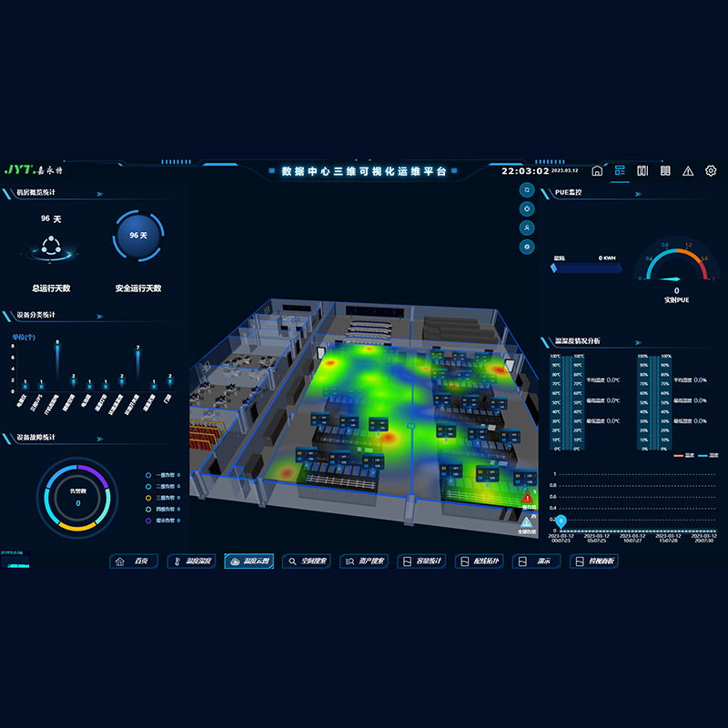 ZT-HJ-S05数据中心三维可视化管理平台:采用数字孪生技术,再通过对数据中心的虚拟仿真,让管理人员可以清晰直观地掌担IT运维中的有效信息,实现透明化与可视化管理,提高便捷性,而且有效提升资产管理与监控管理的效率,实现高效式、可视化的数据中心运行管理新时代。
